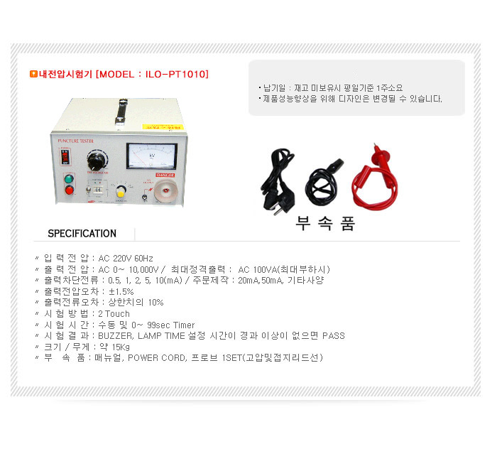기기명 (Instrument) : 내전압 시험기 (Puncture Tester)