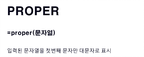 - 기본 구문: =PROPER(텍스트)